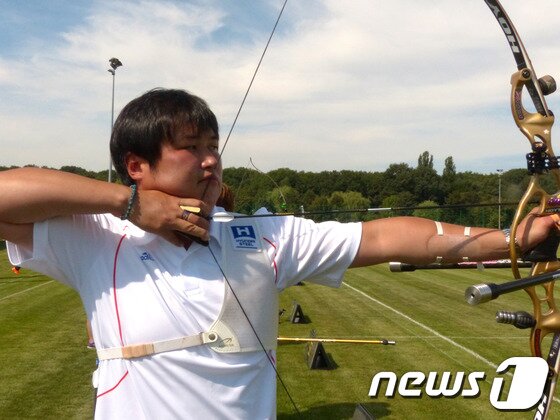오진혁 / ì¤ì§í 기보배 ì´ì ë´ë ì ê²°í¼íê² ë¤ éé커í ë´ì¤ ëìë·ì»´ - 양궁 국가대표 오진혁이 20일 일본 도쿄 유메노시마 공원 양궁장에서 열린 첫 훈련에서 활 시위를 당기고 있다.